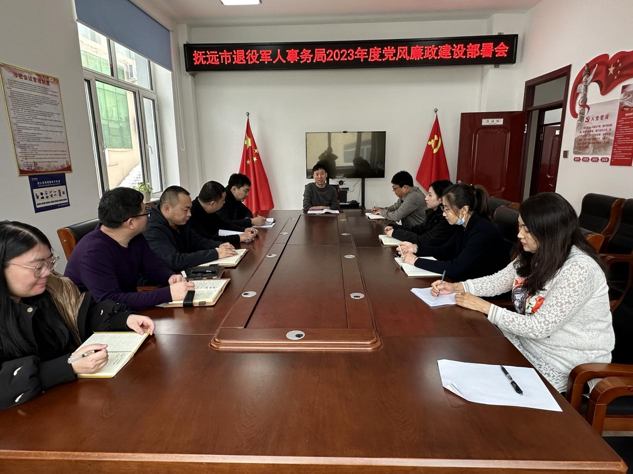 2月28日,撫遠市退役軍人事務局召開黨風廉政建設會議,深入貫徹黨的二十大精神和二十屆中央紀委二次全會精神,總結工作,分析形勢,對全局黨風廉政建設和反腐敗工作進行部署,局長孫永會主持會議。