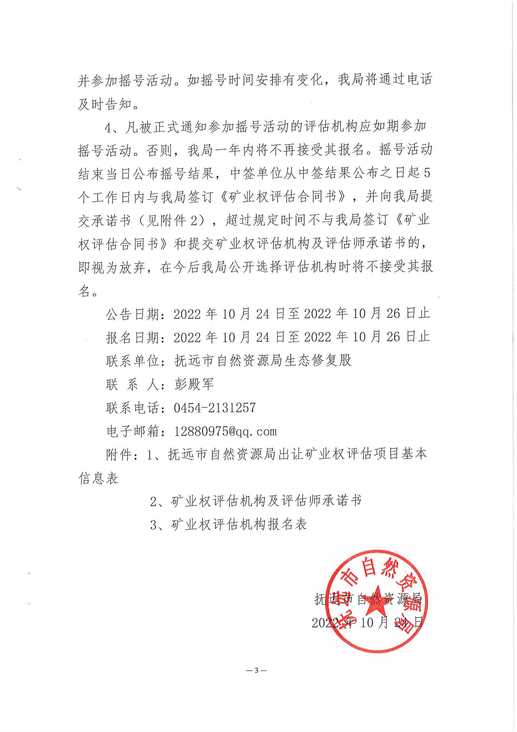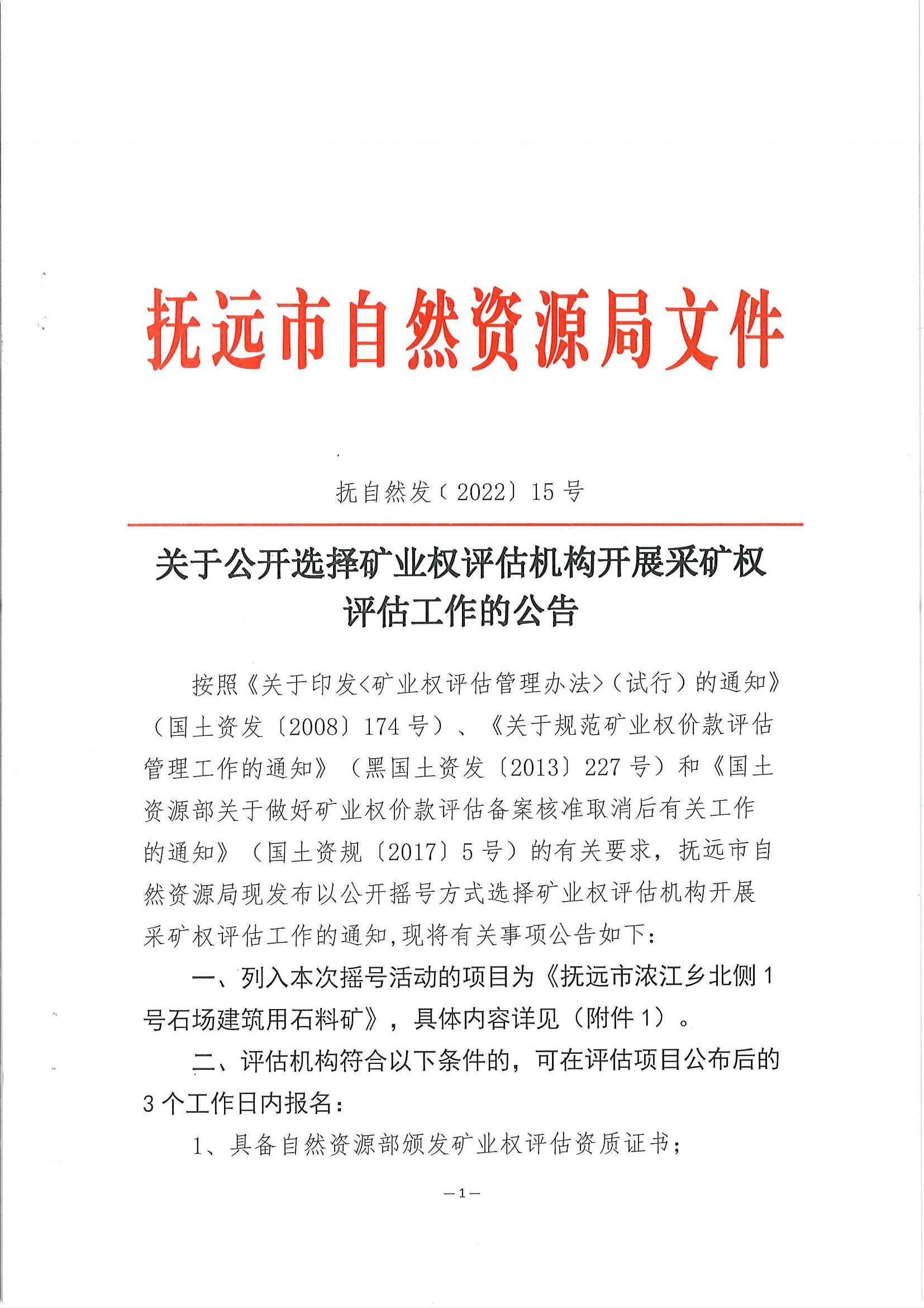 關于公開選擇礦業權評估機構開展采礦權評估工作的公告