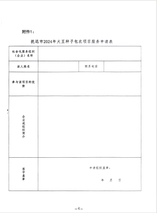 關于2024年撫遠市大豆種子藥劑包衣工作競選社會化服務組織(企業)的通知